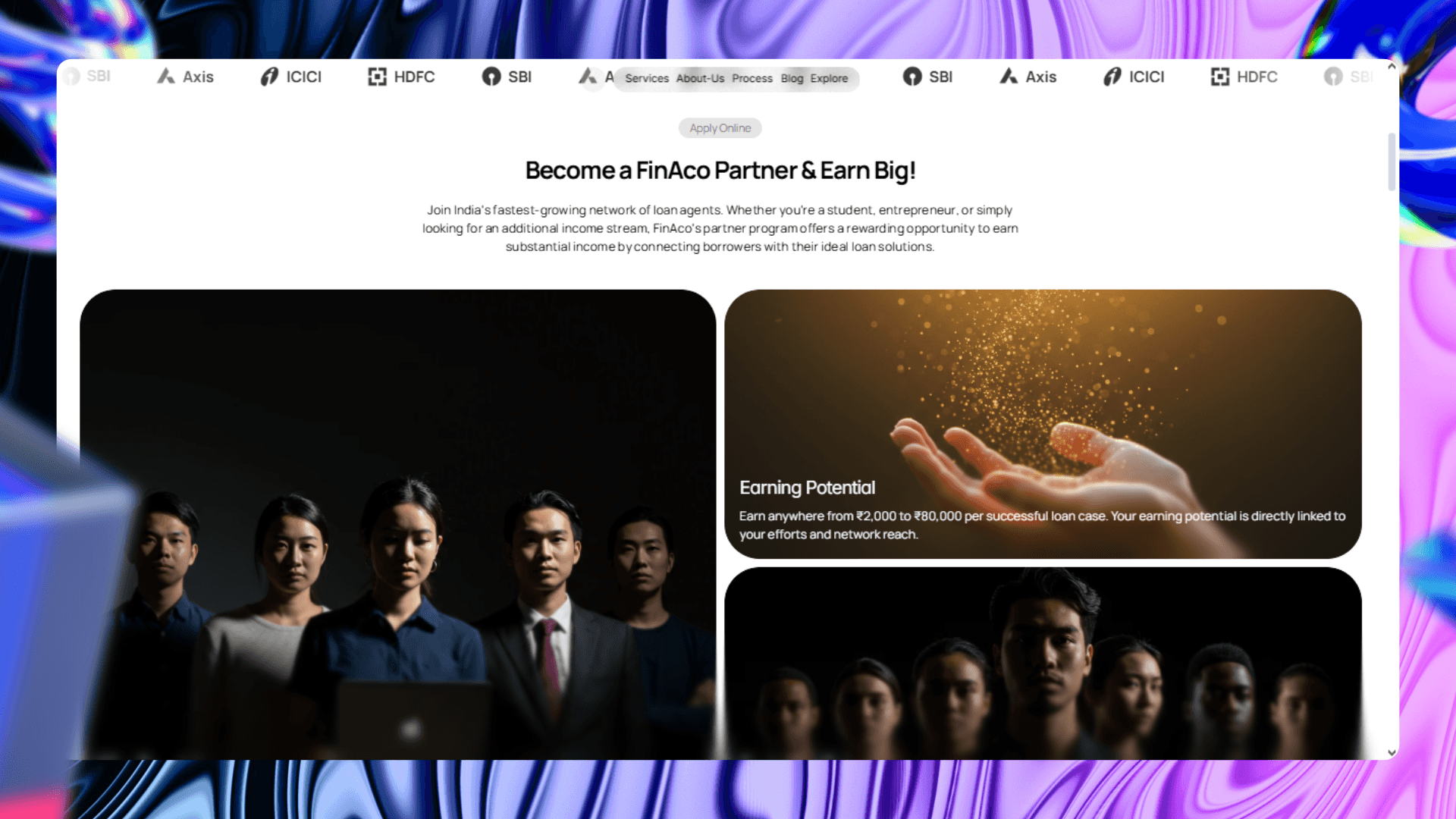 The new platform successfully positioned FinAco as a market leader in accessible FinTech. By clearly articulating the benefits of their agent program—which includes top-notch support and tools—they significantly grew their network of financial agents. The emphasis on a "Wide Network: 60+ Partners" and "Dedicated Support" has maximized their approval chances for borrowers, solidifying their reputation as "India's Trusted hustle free loans Service" and setting the stage for continued strategic expansion.